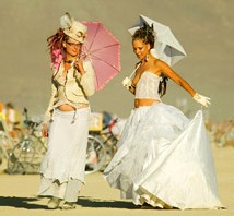 Powerful installation of blue bottles amplified by dramatic Black Rock City sunrise. Art sculpture created by Jan Delano.