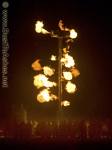 Three regular-sized sledgehammers placed at the base are the tools for interaction. The trick is when all three participants slam at the same time. The more simultaneously the three hammers are struck, the higher the tongues of flame travel up the giant vertical hammer itself. If the three participants get the flames all the way to the top, the hammerhead spins with shooting fires. The right timing is the essence game.