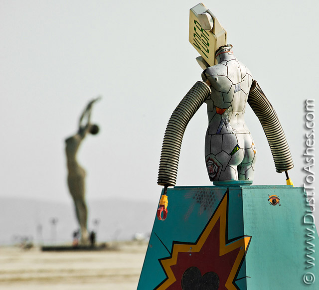 Yoga Robot by Scott Harris giving lessons to Beauty is Truth by Marco Cochrane