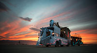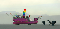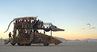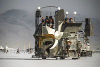 Tagged art car, crescent moon, Luna the Art Crane, mutant vehicle