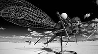 Interactive Damsel Fly on swivel. Rotating dragon fly art installation by Bryan Tedrick.