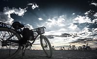 Field of left behind bicycles with no people, the party must have ended or moved before I got here