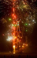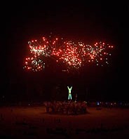 Tagged aerial view, blast, burning man fireworks, cherry picker, lift