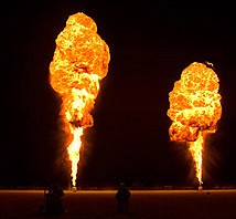 Early stage of 2BLEVE with a crew featuring Ballistic Bob, double large synchronized gas explosions just moments before mushroom formation.