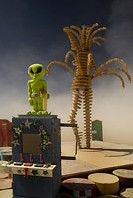 Little green alien traveling from Area 51 to Black Rock City to dance in flames.