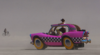 Tagged David Shields, Deep Playa Taxi, funny art car, Hani, Los Angeles artist, pink car