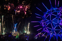 Ever changing colors of RadiaLumia by FoldHouse Collective in front of the fireworks parade over the I, Robot Burning Man