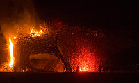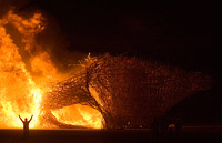Detail view of abstract architecture called Message from the Future Uchronia aka the Belgian Waffle by the Uchronians. Built by Belgian artists.