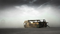 Tagged country, mutant vehicle, old barn, trashed house