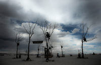Man witnessing the mighty Playa sunrise and counting the bikes passing by