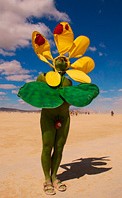 Tagged desert festival, painted man, party, patriot colors, people of burning man, sunflower man
