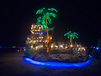 Tagged Burning Man 2013, moving island, palm trees, party, tropical land