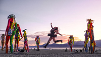 Tagged Burning Man base, burning man night, dancing, girl, neon, Pavla, ribbon, woman
