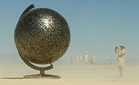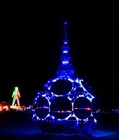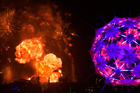 Fascinating robotic and poetic View of RadiaLumia sculpture in front of the fireballs and Burning Man