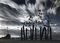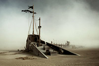 Surreal view of sinking ship in desert dust storm. Art installation by The Pier Group from Reno, NV. A severed Spanish galleon rises out of the dust. The seas have long receded, yet the ship lives on to bear testimony … Continue reading