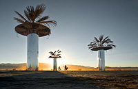 Palm trees with cylindrical mirrors reflecting 180 degree view of Playa