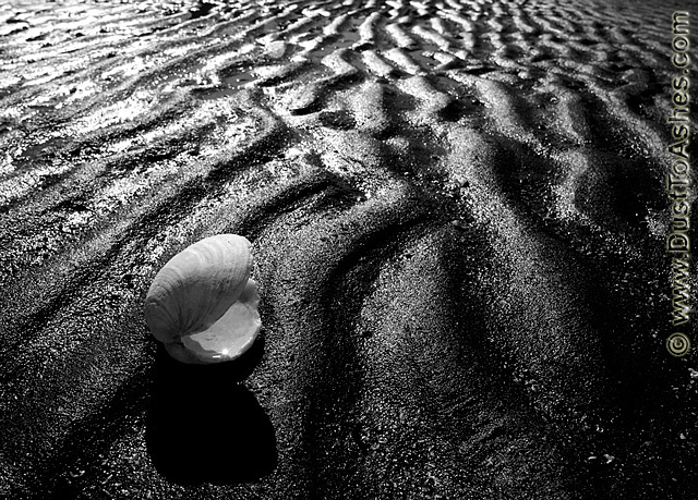 The afternoon when I’ve stumbled upon white open seashell engulfed by symmetry and abstract of sandy waves shortly after high tide along Puget Sound beaches in West Seattle.