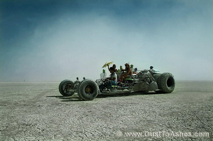 Stainless steel dragster like art car from Department of Mutant Vehicles
