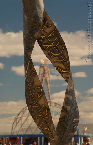 The Man framed inside the abstract leaf art installation