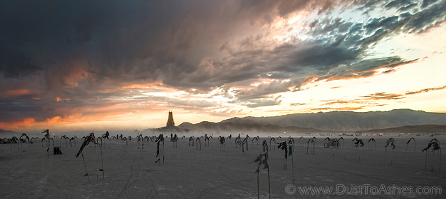 Dramatic red sunset skies over the Cemetery and The Temple.