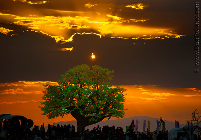 People gathering beneath the Tree of Tenere waiting for sunrise