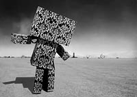 Fantastic Burning Man costume made of cardboard boxes by Xin.