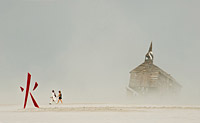 Tagged art installation, Black Rock Station, Black Rock Transportation Company, building, burning man art, desert setting, lonely, railroad, sculpture, traffic lights, train station