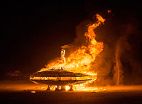 Tagged Burning Man 2013, moving island, palm trees, party, tropical land