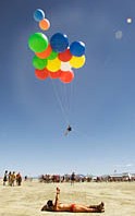 Tethered helium balloon trips out on the Playa. What is success? It is a toy balloon among children armed with pins. Gene Fowler