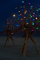 The trio of bamboo trees with glowing colorful leaves slowly changing their colors. This is the night oasis where people can relax and enjoy the rising Moon. The trees are reacting to variety of sounds and motion around the trees. … Continue reading