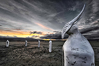 Tagged beast figurines, cast bodies, circle, clouds, dusk, Love Thy Beast, Zea Narvaez