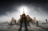 Tagged burning man statue, dust storm, edifice, In the middle of the storm