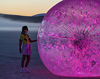 Tagged BM2022, girl, Gus Cier, hope ball, Ilona, LED light effect, look, sphere, surprise, surreal, touching woman, waking dreams