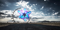 Tagged airship, blimp, deep playa surreal scene, Gaian Airship, inflatable art