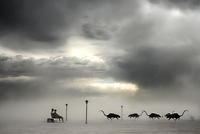 Melton John Piano Art Car and statue of Broken by Michael Benisty