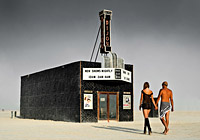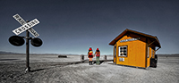 Tagged black rock city, Black Rock Station, Black Rock Transportation Company, boy and girl, Crossing, lamp heads, lamps, man and woman, Michal, Pavla, Rail Raod, station, train, waiting for train, yellow building