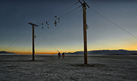 Tagged bicycles, electric poles, hanging shoes, Michael, Michal, Pavla, riding bikes