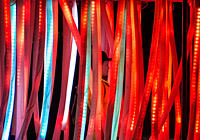 Tagged art sculpture, changing colors, Charles A Gadeken, color cubes, installation, LED lights, night photo, tree