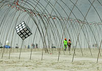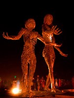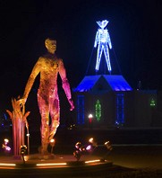 Saturday night shot shortly after the Man burned and collapsed crowd is gathering around the “Passage” installation.