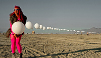 Tagged girl, holding balloons, Robert Bose, white balloons, woman