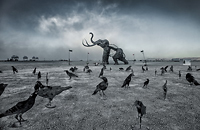 Sunday morning skeleton of the burned man rebuilt out of metal left overs