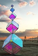 Amazing column of translucent and reflective prisms balanced point on point